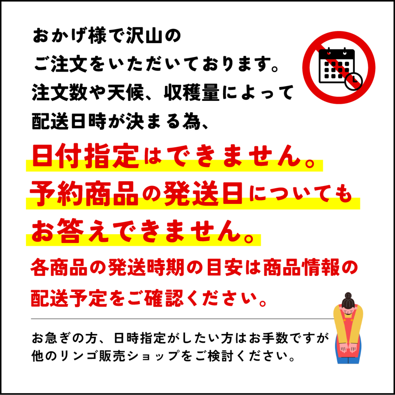 ■予約商品の発送日や発送時期に関する個別のご質問にはお答えできません。